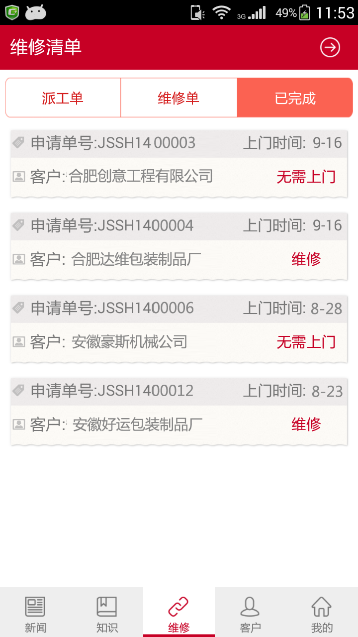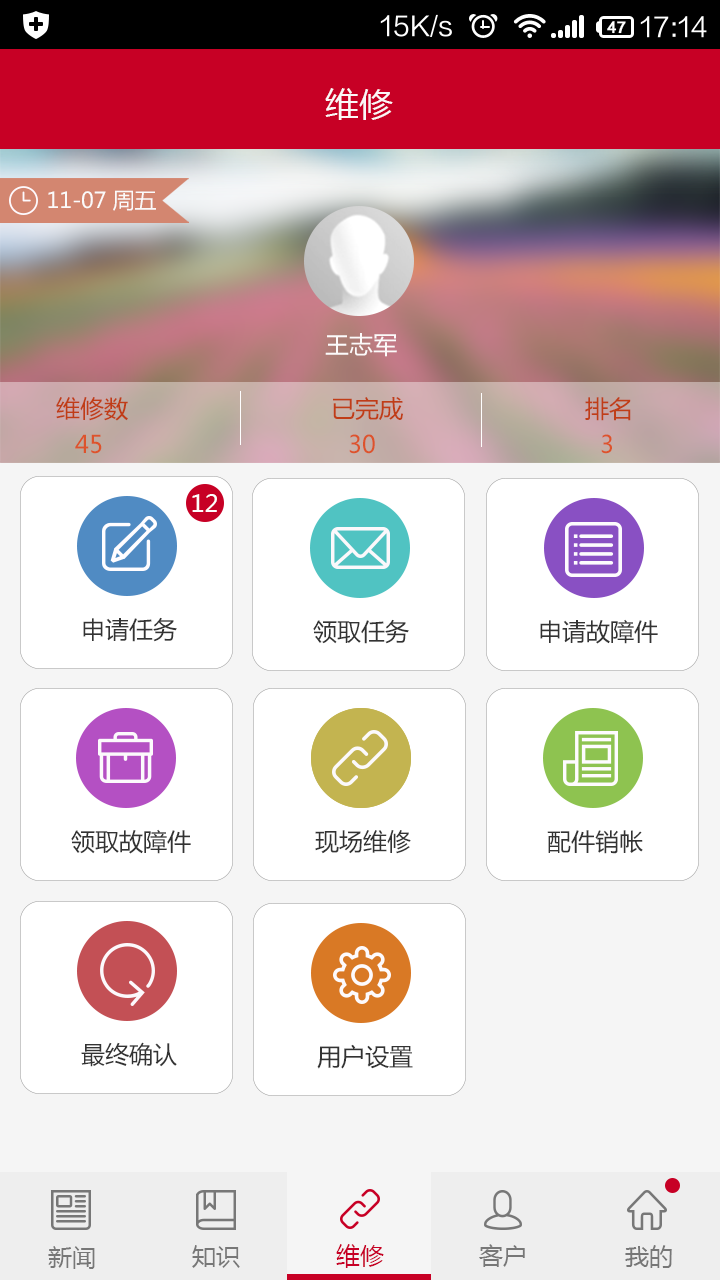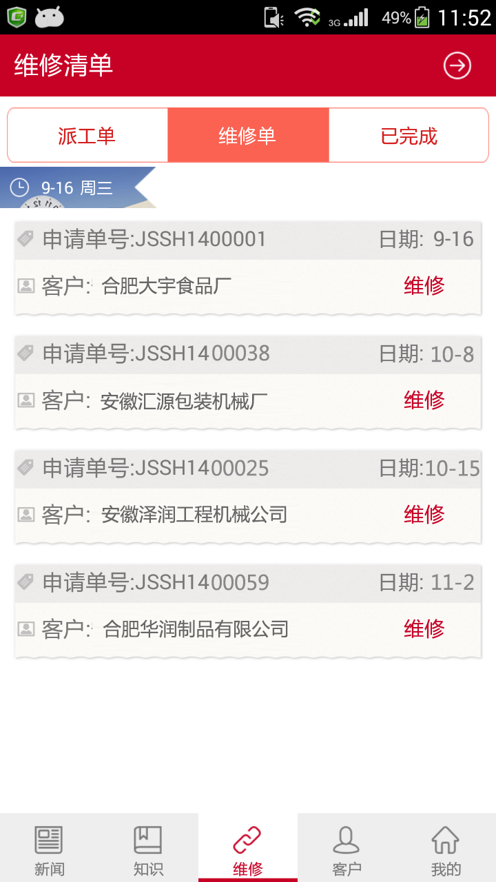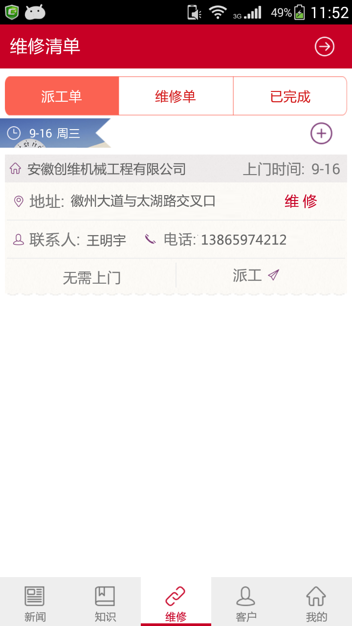 基于ERP系统,立足实际整车维修需求,对整车维修实现多点统一管理,通过手机实时响应维修需求,即刻完成任务派工和维修确认;并对配件进行全程跟踪,针对三包件自动发起集团统一审批;结合现场维修提供技术支持和全过程管理。同时应用APP将功能延伸到各网点价格管理及库存信息共享,大幅降低维修成本,提高维修效率。